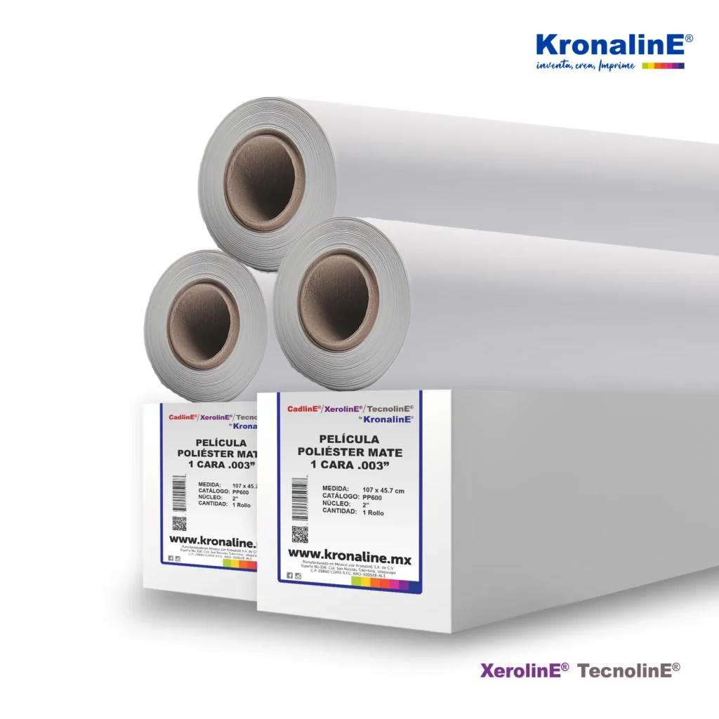 Película base poliéster (PETE) traslucido, mate una cara, tratada con un recubrimiento que la hace apropiada para impresión de planos