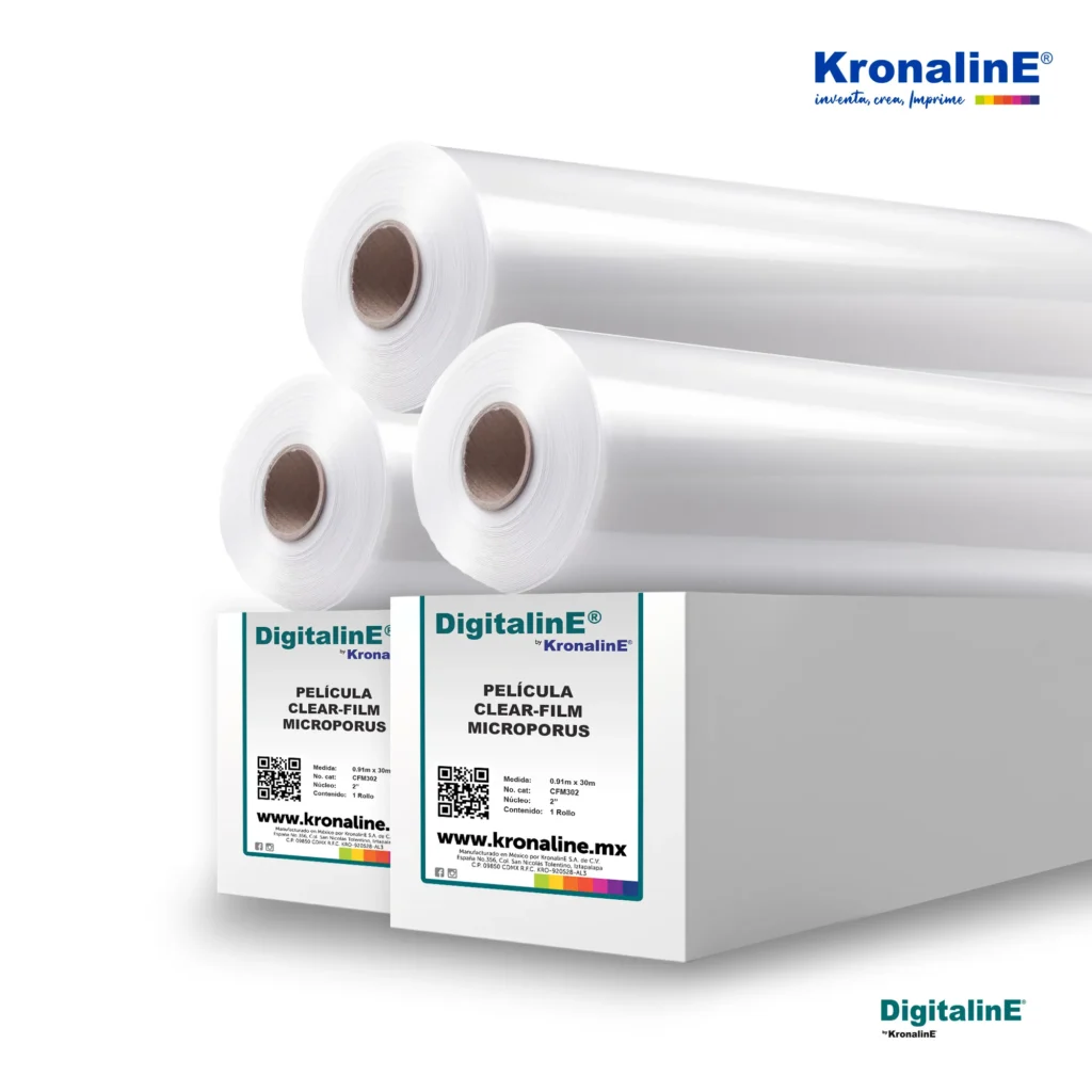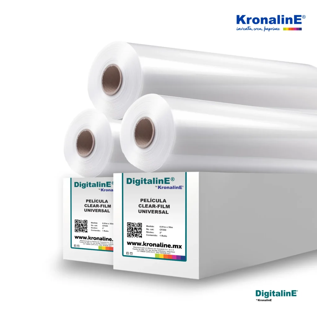 Película de poliéster transparente diseñada para impresiones a color y monocromáticas de alta calidad manteniendo su claridad y transparencia.