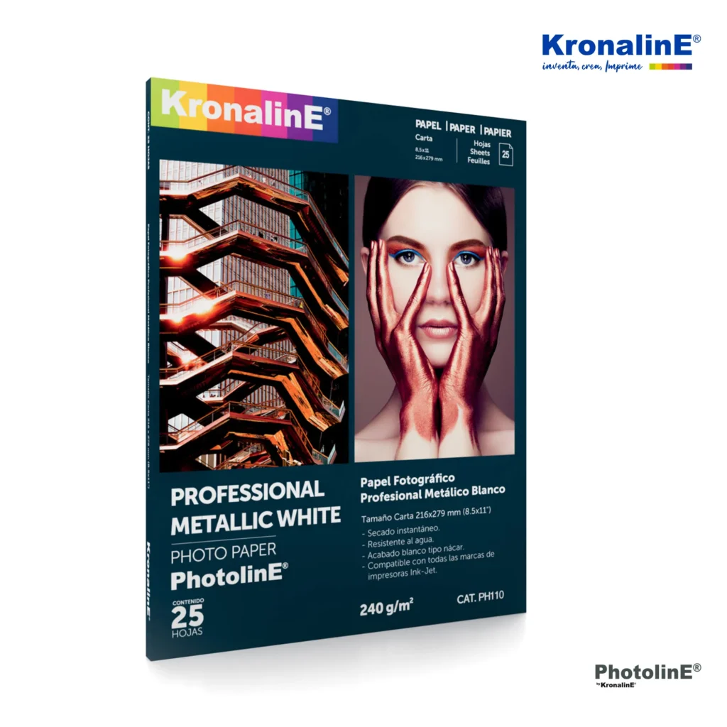 Este papel profesional con acabado Metálico Blanco (tipo nácar) está compuesto de un sustrato base de alto peso con un recubrimiento de resina y una capa microporosa, con lo que se logra una mayor definición y control de tinta. Su acabado Metálico Blanco, lo hace único e inigualable en el mercado para aquellos trabajos que requieren la mayor calidad de impresión.
